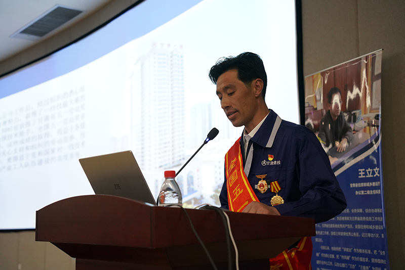 本次活動,特別邀請到全國五一勞動獎(jiǎng)?wù)?、全國技術(shù)能手獲得者,甘肅建投產(chǎn)業(yè)工人高鵬作勞模精神宣講,他講述了一路走來,用勞動書寫人生,用技能創(chuàng)造生活,用管理促進(jìn)工作的精彩事跡。