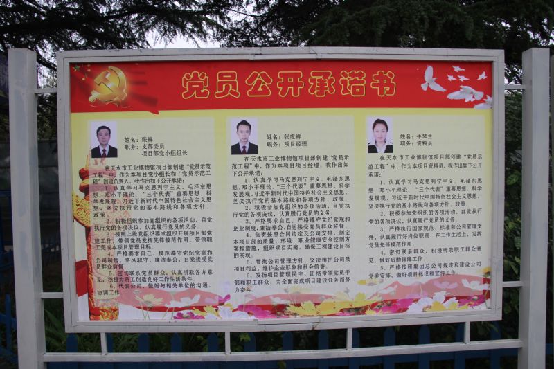 5月10日上午,建設(shè)公司黨委在由八公司承建的天水市工業(yè)博物館一區(qū)全息互動(dòng)館、二區(qū)序廳、一期地下車庫(kù)建設(shè)項(xiàng)目現(xiàn)場(chǎng)隆重舉行“黨員示范工程”命名授牌儀式。建設(shè)公司黨委書(shū)記、董事長(zhǎng)張國(guó)虎,紀(jì)委書(shū)記、工會(huì)主席芮劍鋒,公司黨委組織、宣傳部門負(fù)責(zé)人,八公司黨支部書(shū)記、經(jīng)理蒲小平,項(xiàng)目經(jīng)理,項(xiàng)目黨員及管理人員代表等30余人參加了儀式。