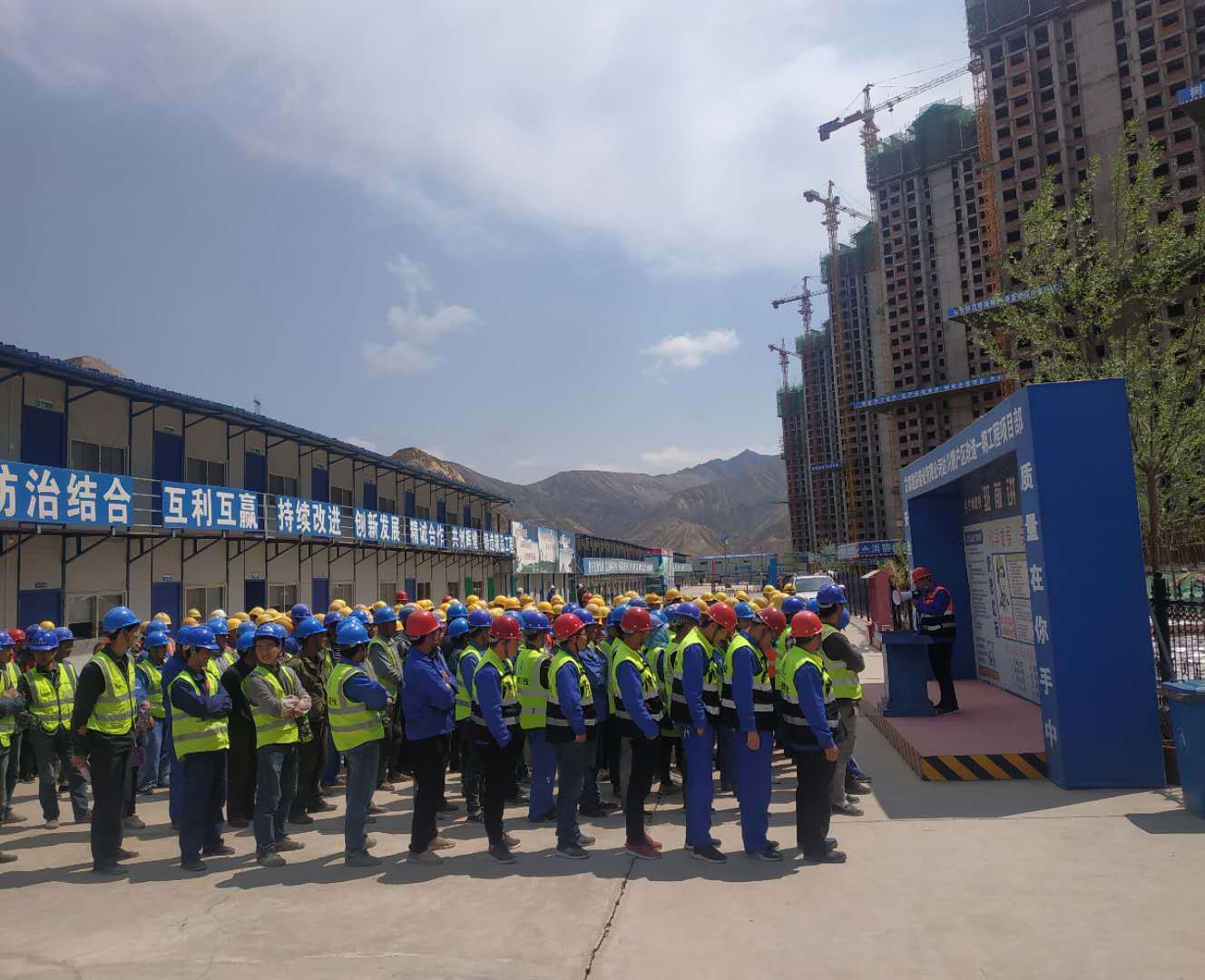 為貫徹落實中央、甘肅省政府、蘭州市政府以及相關主管部門關于掃黑除惡專項斗爭決策部署以及深入開展掃黑除惡專項斗爭,維護社會安定,增強對黑惡勢力打擊力度,切實提高群眾對掃黑除惡專項斗爭的知曉率和參與率。建設公司三公司達川三江口棚戶區(qū)改造項目一期工程3標段項目部于近日在施工現場,組織施工人員160余人召開了專題宣傳教育活動。